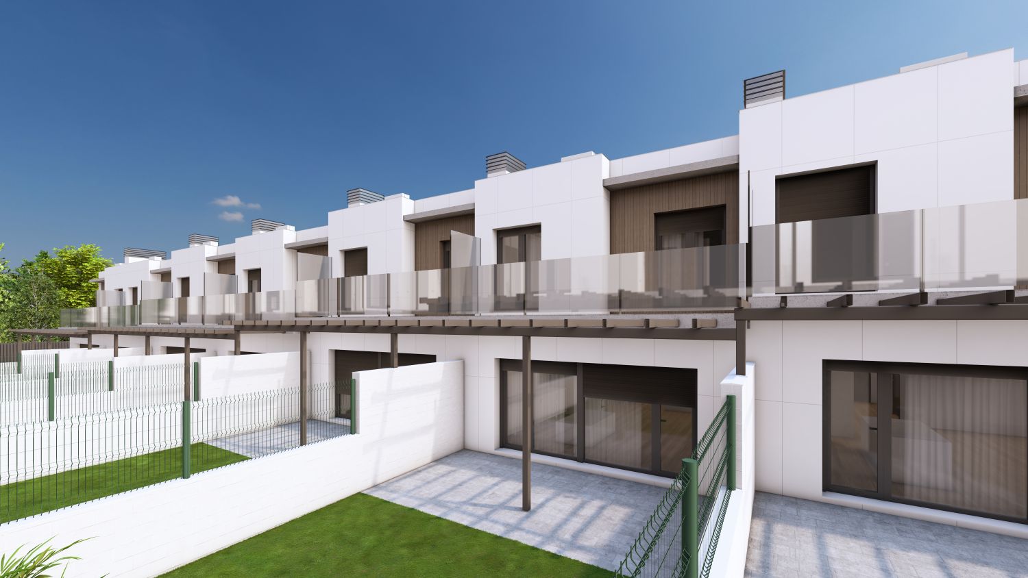 Vivienda adosada en promoción Bellavista Homes identificada con el número 49. Consta de sótano con garaje para dos vehículos, cuarto de instalaciones, aseo y bodega; Planta baja con salón-comedor-cocina, Dormitorio y Baño; Planta primera con tres dormitorios, dos baños y terraza. El chalé tiene espacio de jardín en frente y trasera de la parcela con una superficie total de 77,65 m2.